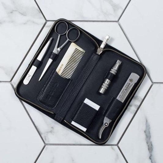 Barbarossa Brothers Japanese Steel Matt Black and 24k Gold Barber Set
